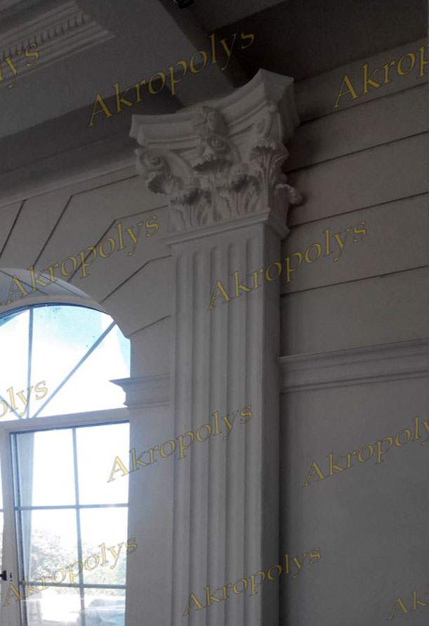 · Капитель — венчающая часть, самая декоративная и выразительная. Именно капитель задает стилистику всего элемента и часто украшается лепниной в интерьере, растительными орнаментами или барельефами из гипса .